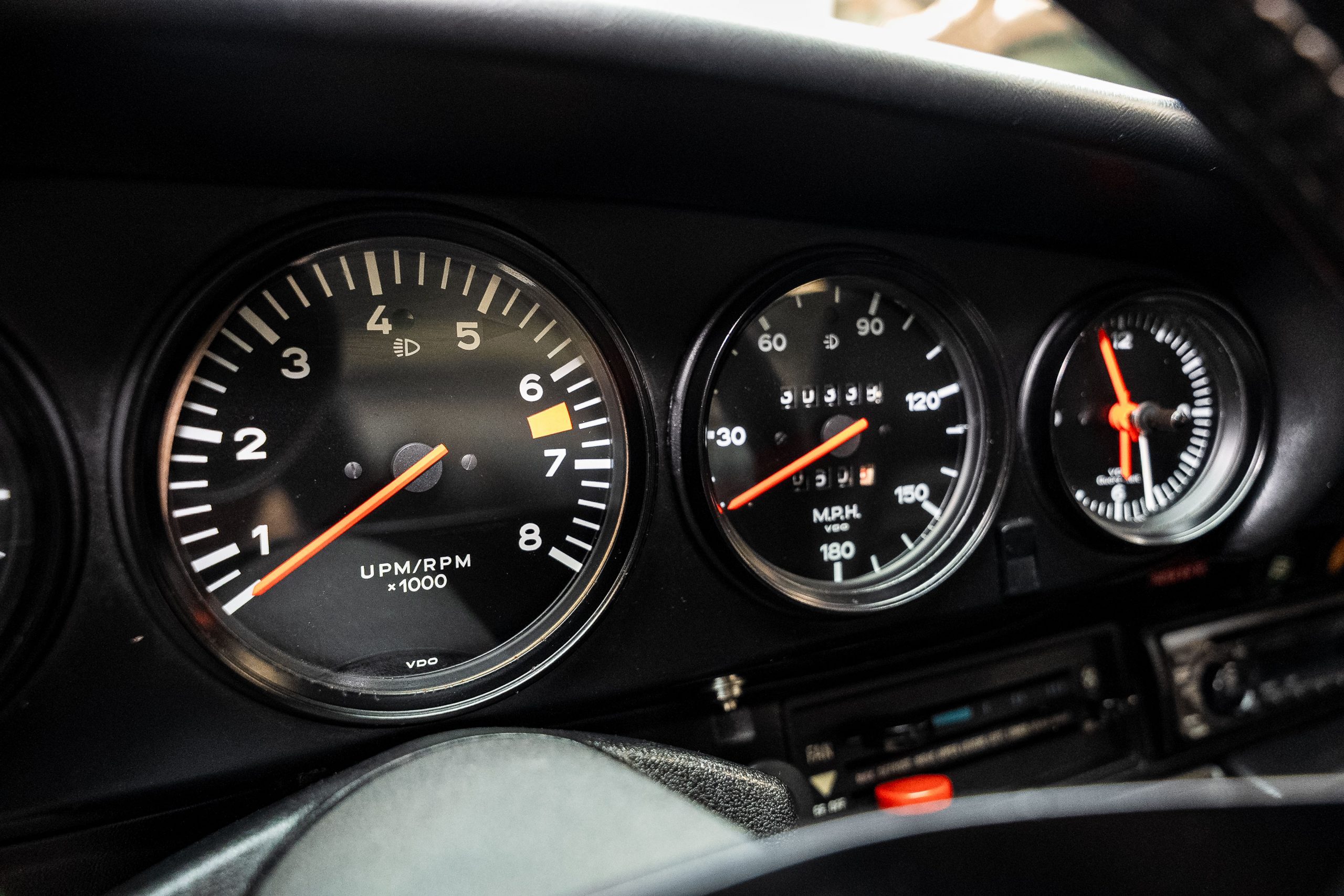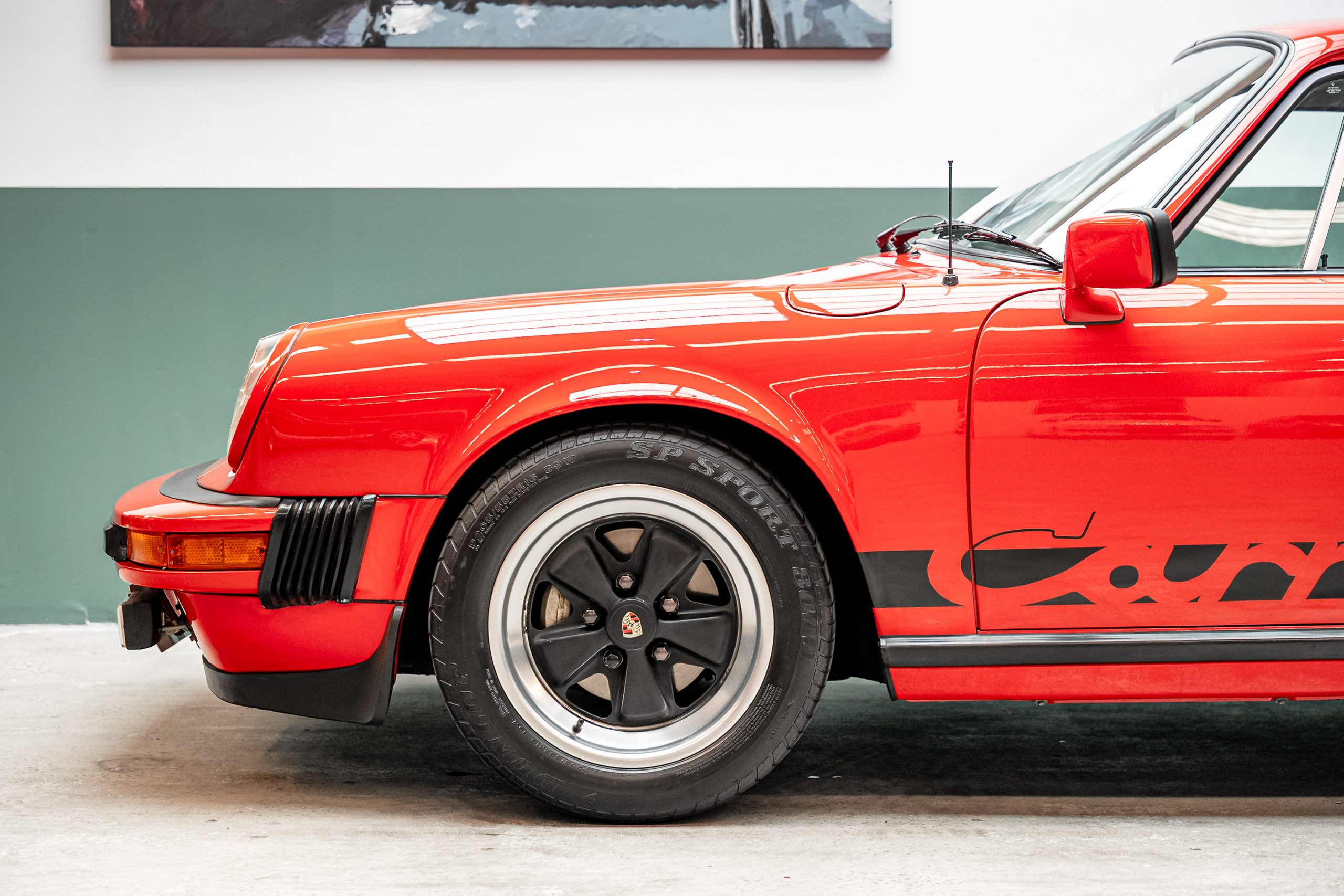Finished in classic Guards Red with contrasting black Carrera side graphics, this Carrera presents exactly as enthusiasts expect. Exterior highlights include the correct whale-tail rear spoiler and period-correct Fuchs alloy wheels, giving the car its unmistakable stance and presence.