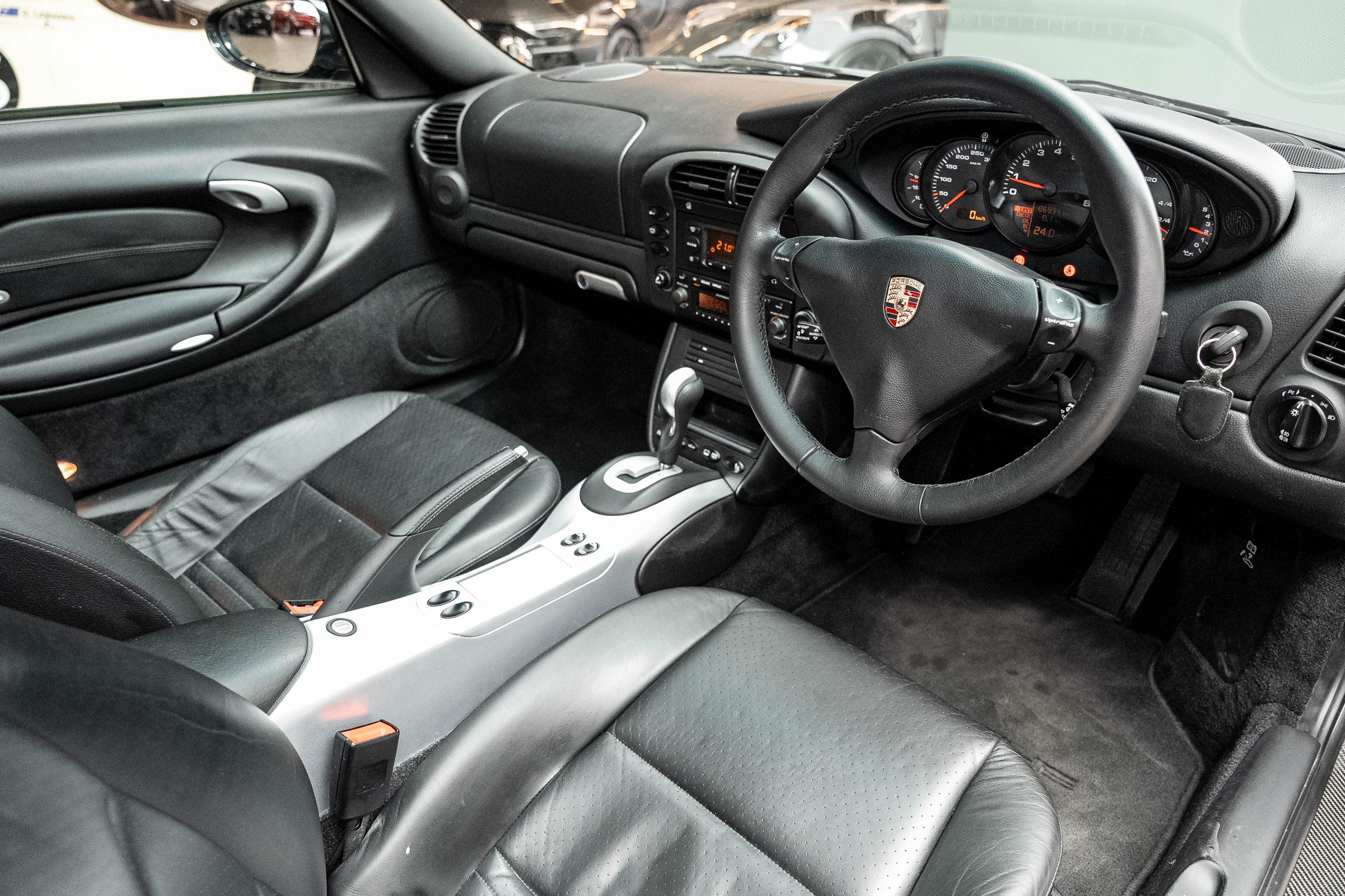 The gearbox offers both fully automatic operation and manual shift control for added driver engagement. Importantly, the IMS bearing has been professionally addressed, providing valuable peace of mind for buyers familiar with the 996 platform.